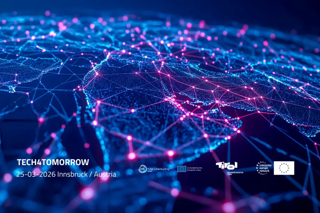 Join us at Tech4Tomorrow 2026, an exclusive event connecting Tyrolean corporations, SMEs, and international startups. Organized by EIT Manufacturing East, Standortagentur Tirol, and Enterprise Europe Network, this event showcases cutting-edge technologies and fosters collaboration between local industry leaders and pan-European innovators. Gain insights from past Proof of Concept projects and learn from Venture Clienting (VC) experts, making Tyrol the hub for new startup and SME partnerships.